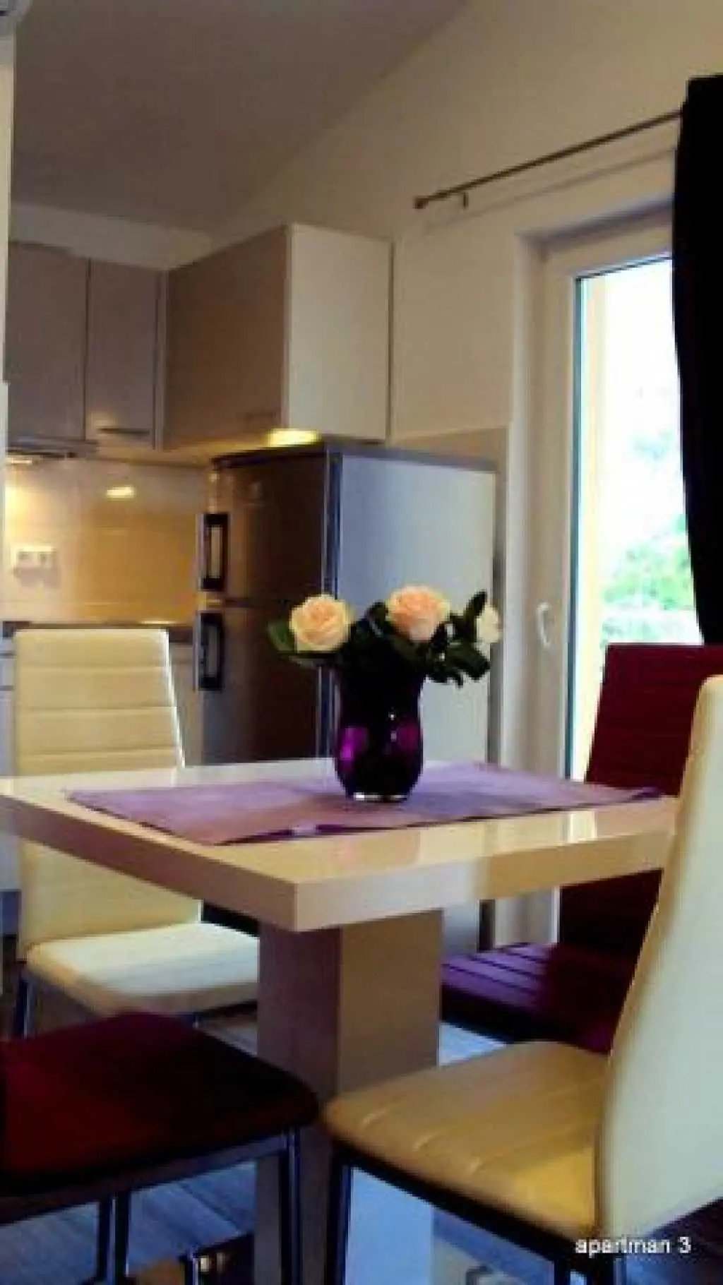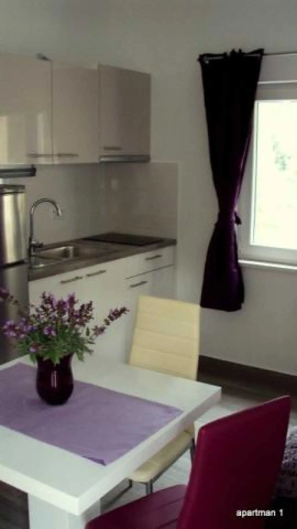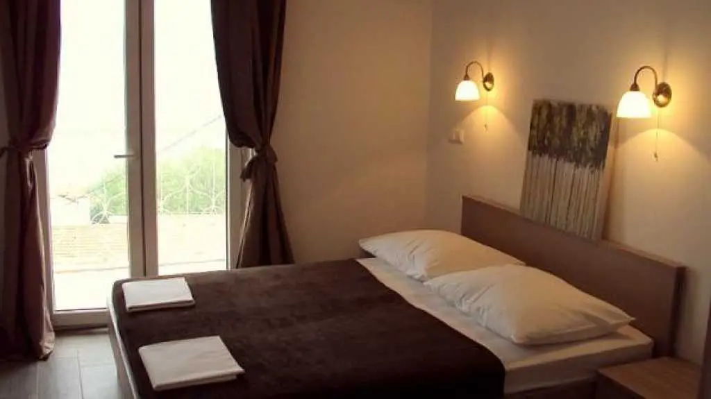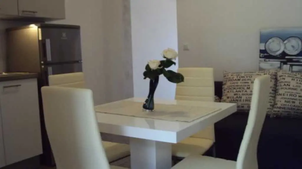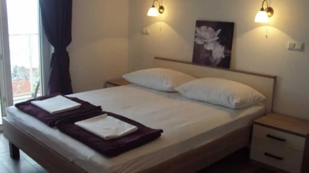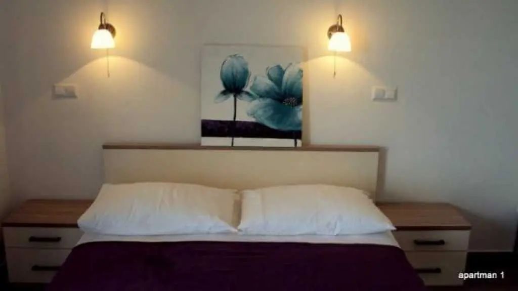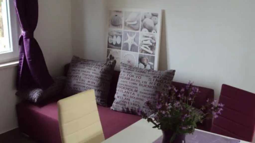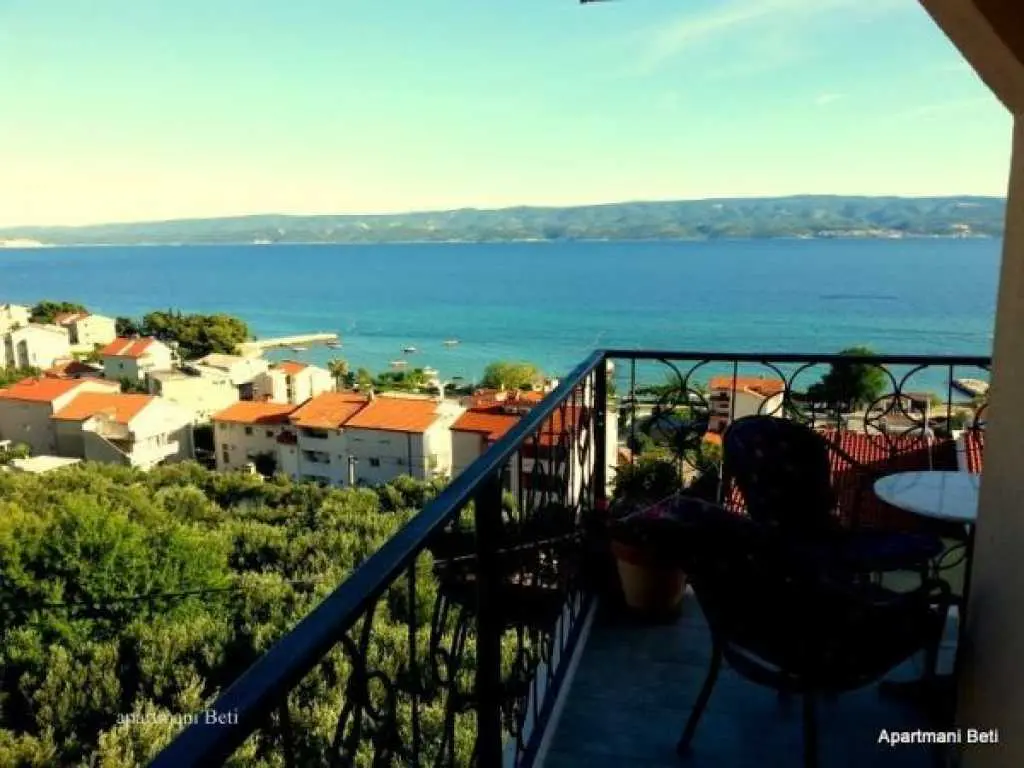 Moderni appartamenti al piano superiore con balcone e vista mare. Questi appartamenti si trovano nella splendida localit? di Duce, a soli due chilometri dalla citt? di Omis. Duce ? noto per i suoi quattro chilometri di spiaggia sabbiosa con mare cristallino. Gli appartamenti inondati di luce solare si trovano al piano superiore di una casa famiglia. Tutti gli appartamenti misurano 35 mq e sono ideali per un massimo di quattro persone. Tutti gli appartamenti dispongono di balcone con vista sul mare e dispongono di mobili eleganti. Il giardino ha una griglia, un arredamento tavolo e giardino. Gli appartamenti si trovano molto tranquillamente, anche se la spiaggia ? a soli due minuti a piedi. Bar, ristoranti e negozi sono a soli 200 metri dalla struttura.