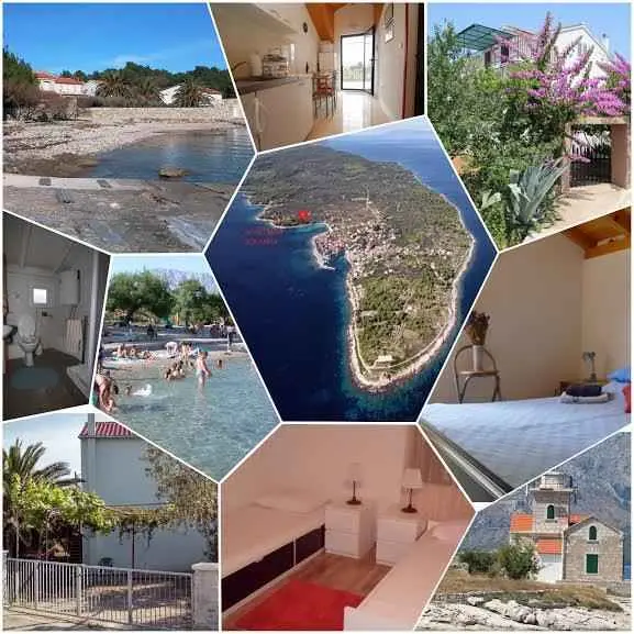 Al primo piano di una casa privata si affitta un monolocale (2 persone) e un appartamento (2+2) con ingresso indipendente dal parcheggio. Davanti all'appartamento c'è una grande terrazza con vista sul mare e su Pelješac e Korčula. La casa è circondata da un giardino (palme, bouganville, limoni, mandarini, arance, prugne, fichi, olivi, carrubi, rosmarino, lavanda,...), e si trova a 110 metri dal mare. E' l'ideale per chi vuole prendersi una pausa dalla città. A Sućurj ci sono diversi ristoranti, bar, clinica, ufficio postale, supermercati, mercati, parrucchiere, pasticceria... Il collegamento in traghetto parte da Drvenik, il viaggio dura 30 minuti, e in estate ci sono 11 linee giornaliere, e durante turni turistici il traghetto effettua circa quindici corse al giorno. Il traghetto può ospitare più di 100 auto.