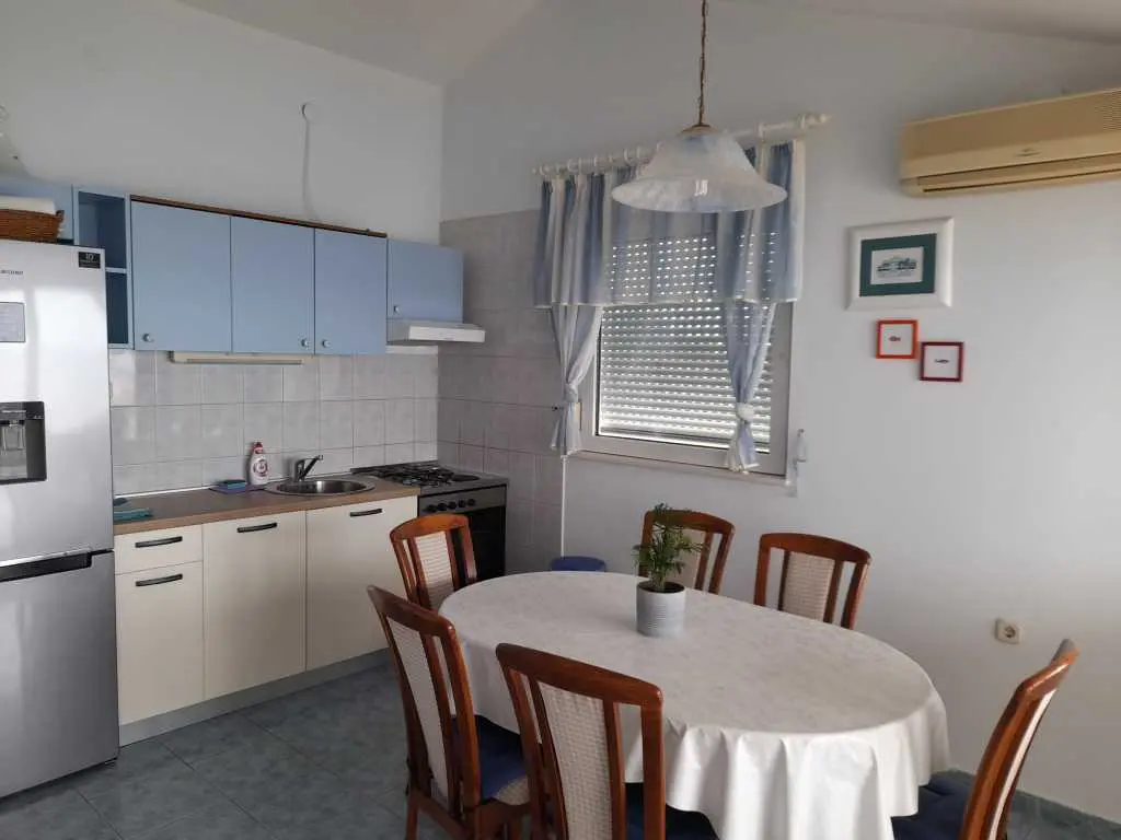 Appartamento Roko si trova sulla costa a Bilo vicino a Primosten. È completamente attrezzato e ben arredato e può ospitare 6 persone. Da tutte le stanze (tranne la camera da letto) c'è una bellissima vista mare. La spiaggia si trova proprio di fronte alla casa ed è possibile utilizzare sdraio e ombrelloni. Puoi camminare lungo la passeggiata illuminata fino a due ristoranti sulla costa e alla stessa Primošten. Le zanzariere sono installate nelle camere da letto. Il balcone si affaccia sul mare aperto e in lontananza si possono vedere le Incoronate. Non c'è folla sulla spiaggia, gli ospiti dell'appartamento stanno facendo il bagno. Tutti coloro che amano una vacanza attiva possono correre una passeggiata di un chilometro, tuffarsi, navigare, navigare su una tavola SUP. Puoi vivere gli splendidi tramonti dietro l'isola di Tmara dal nostro balcone o dalla spiaggia. La maggior parte dei nostri ospiti ha espresso la propria soddisfazione e lo confermano con il proprio ritorno ogni anno. Garantiamo una vacanza e bei ricordi.