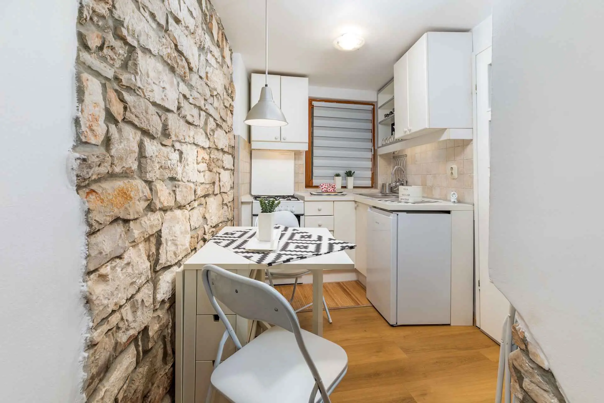 Questa affascinante casa vacanze si trova nel cuore della piccola cittadina mediterranea di Fasana e nelle immediate vicinanze della piazza principale. Anticamente questa casa fungeva da laboratorio di anfore di ceramica. Il vicino museo funge da testimone dei tempi antichi e vi consigliamo di visitarlo per sentire un tocco del passato. Questa casa a due piani è composta da soggiorno, piccola cucina e bagno al piano inferiore e due camere da letto al primo piano. L'ingresso principale è un piccolo portico coperto dove è possibile sorseggiare il caffè mattutino e osservare il ritorno dei pescatori. Il parcheggio è previsto a 100 metri dalla struttura con pagamento aggiuntivo settimanale di 28 euro.