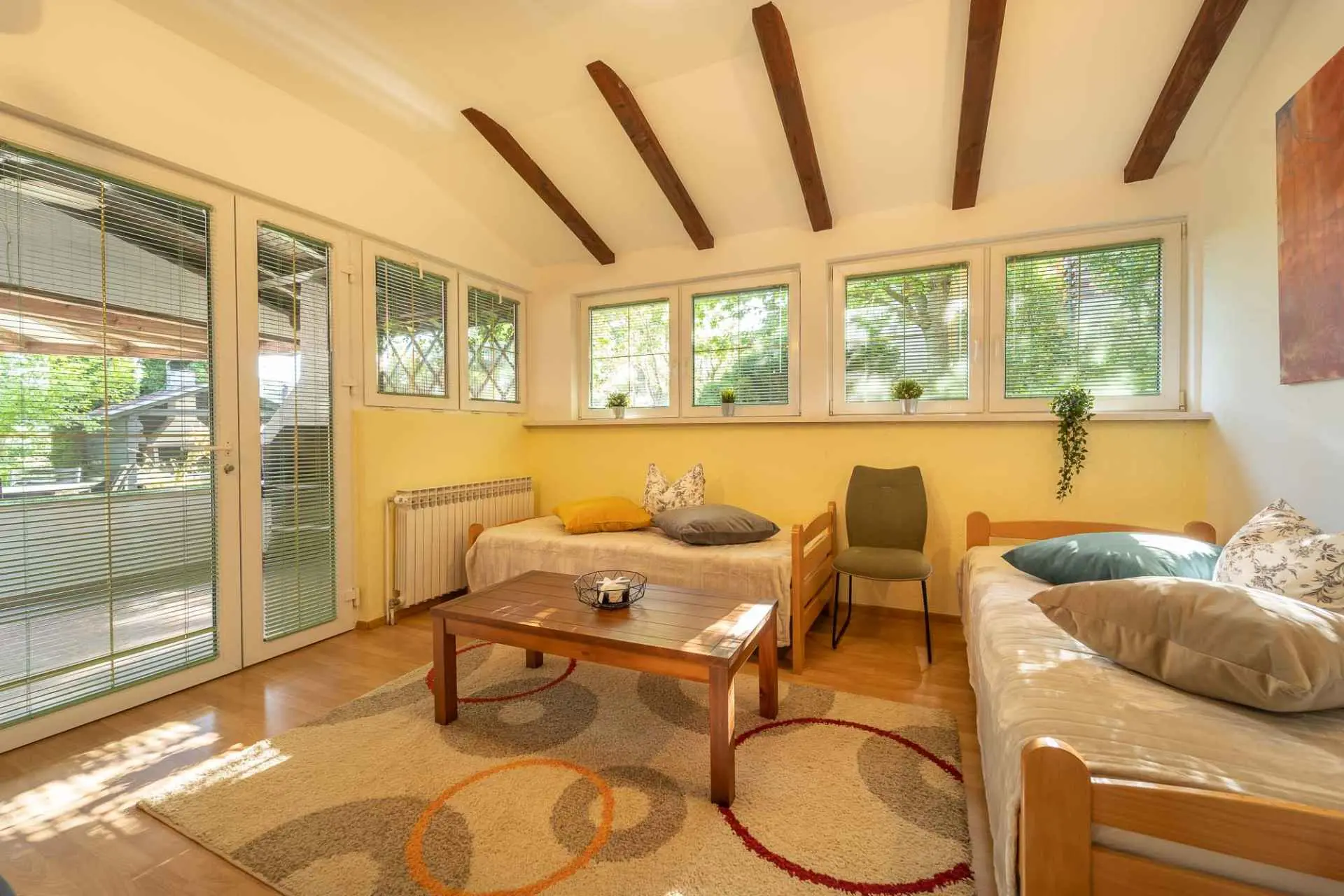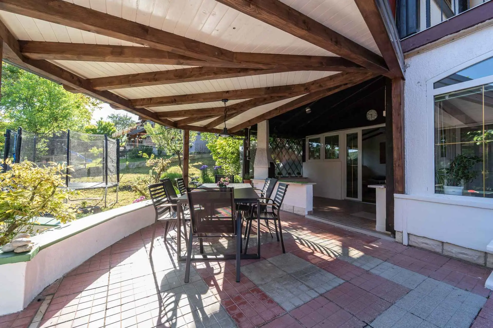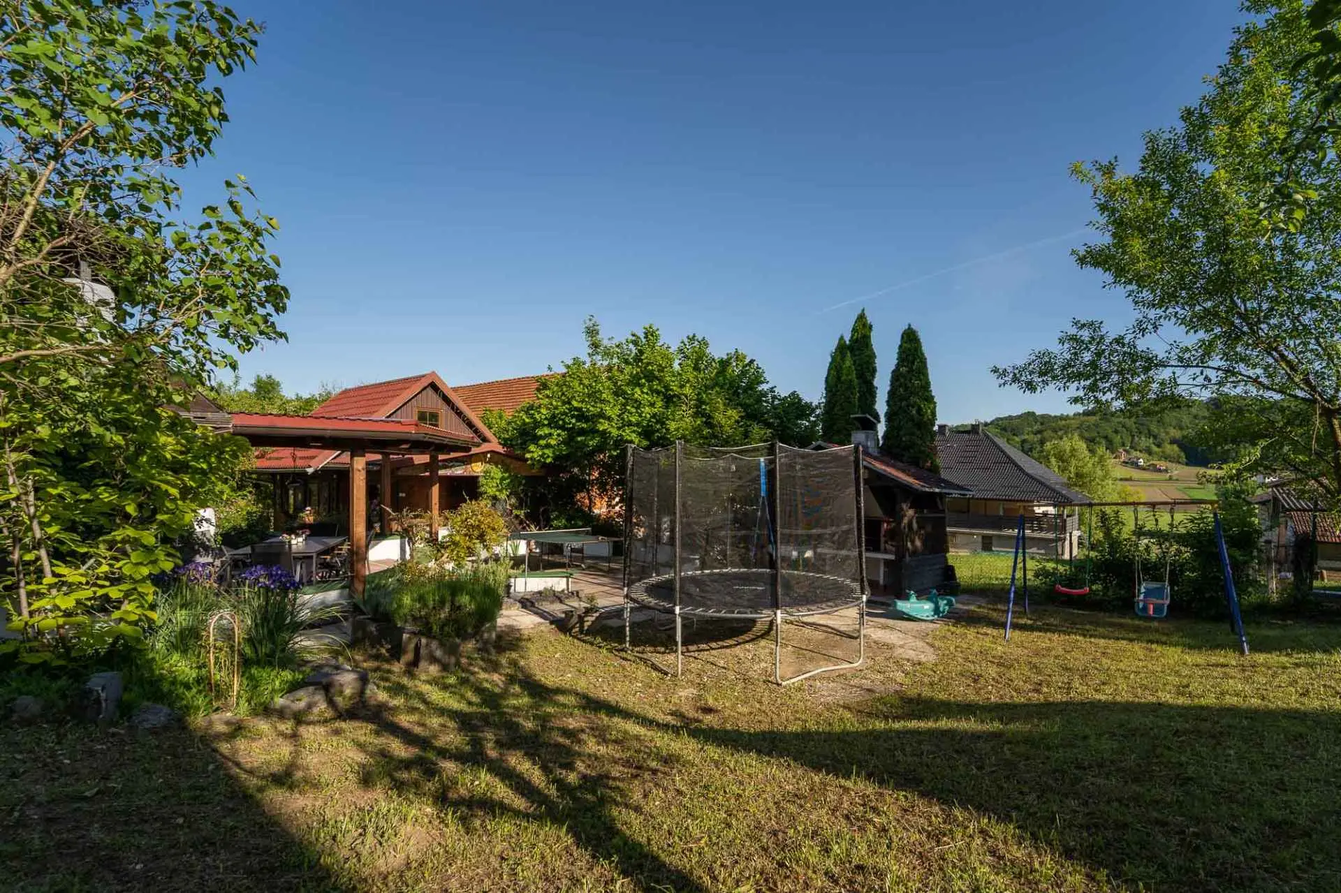 Casa vacanza, modernamente arredata e riccamente attrezzata. Si trova a soli 250 metri dalle Terme Tuhelj e dal parco acquatico. La casa dispone di 4 ampie camere da letto per un totale di 8 persone e 2 bagni, oltre ad un divano letto dove possono dormire altre 2 persone. Goditi il bellissimo giardino verde con un grande tavolo sulla terrazza e barbecue, mentre i tuoi bambini giocano sul trampolino, altalene, ping pong o freccette. Ci sono negozi, una stazione di servizio, buoni ristoranti e cantine nelle vicinanze. Fondamentalmente tutto per una vacanza rilassante e significativa.